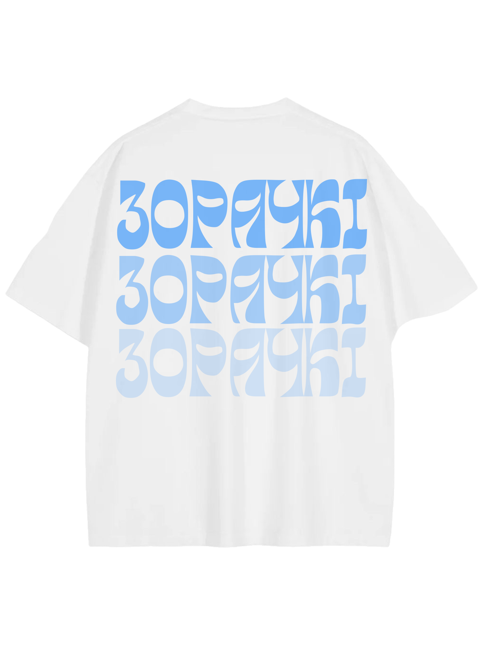 Высакаякасны прынт у трох адценнях блакітнага на спіне і пярэдняй частцы цішкі(шоўкаграфія)